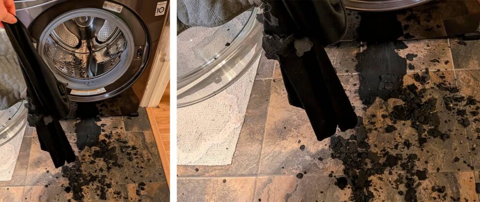 Esse mesmo processo já danificou solas de tênis antigos guardados, capas de controles de videogame e até revestimentos de cabos. No caso deste mousepad, a combinação de idade avançada, o movimento intenso da lavadora e, possivelmente, água quente, resultou no desastre.